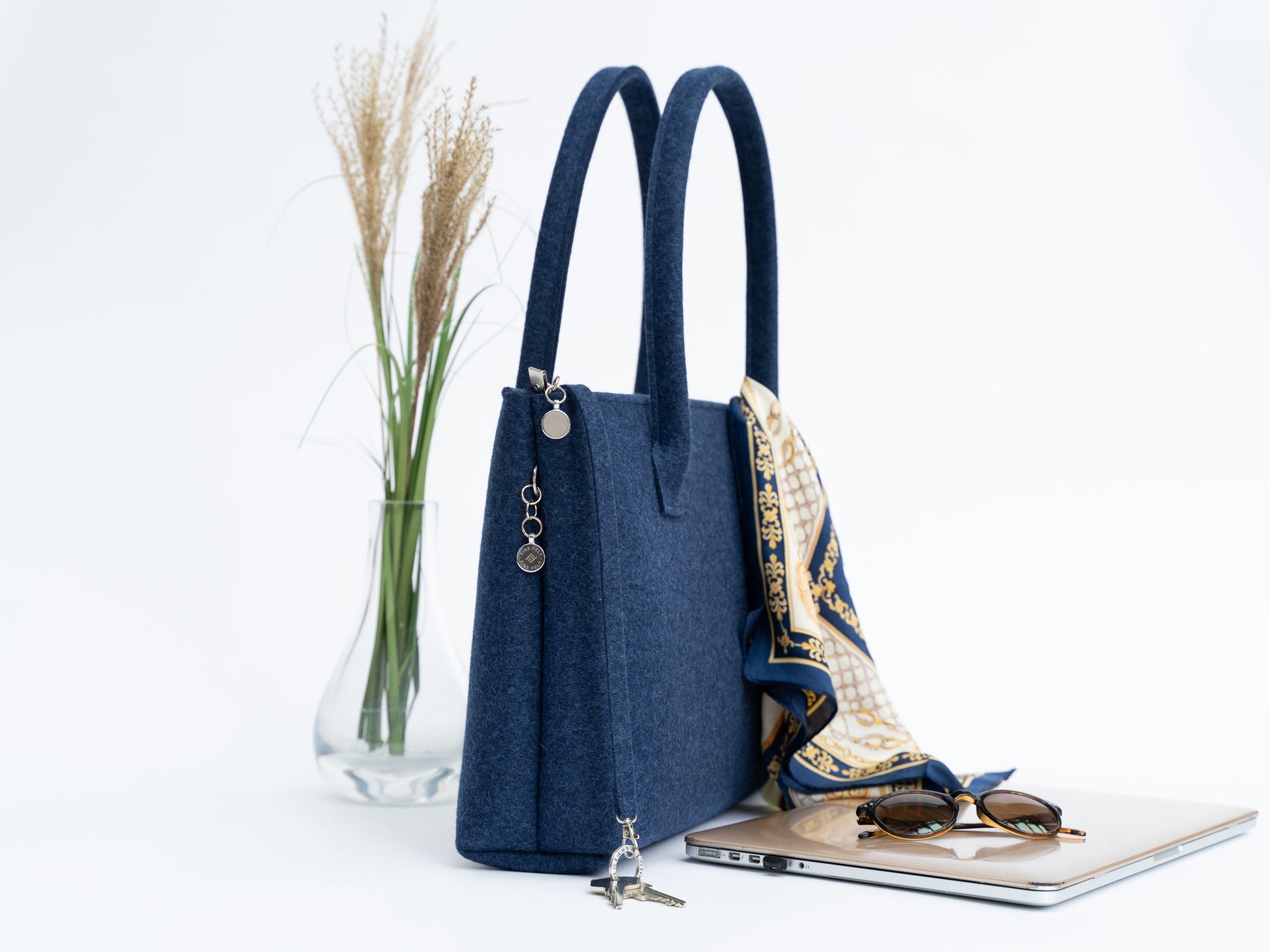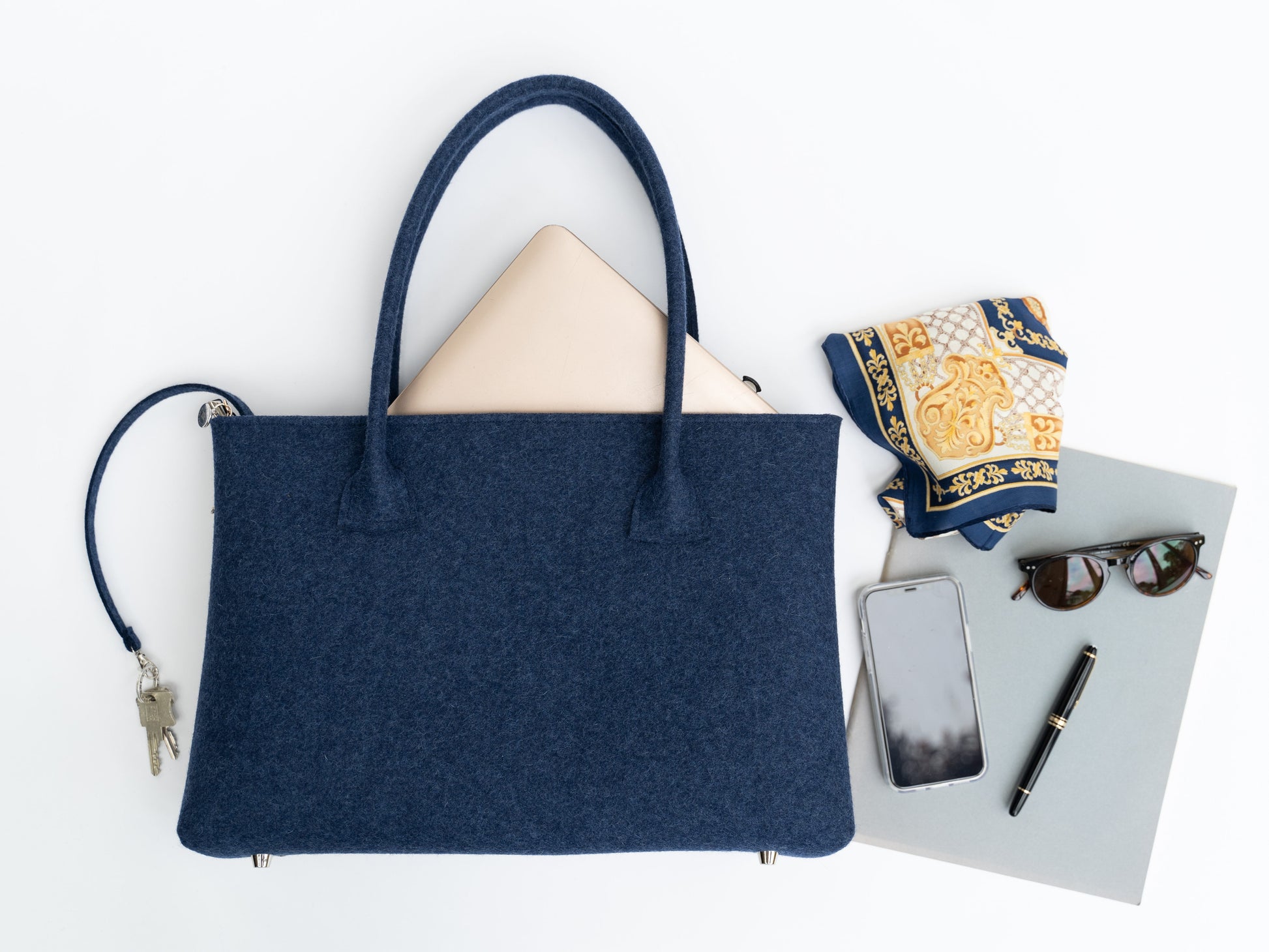 FINE FELT *F* die Business Shouder-Bag in der zeitlosen Farbe dunkelblau-meliert.
