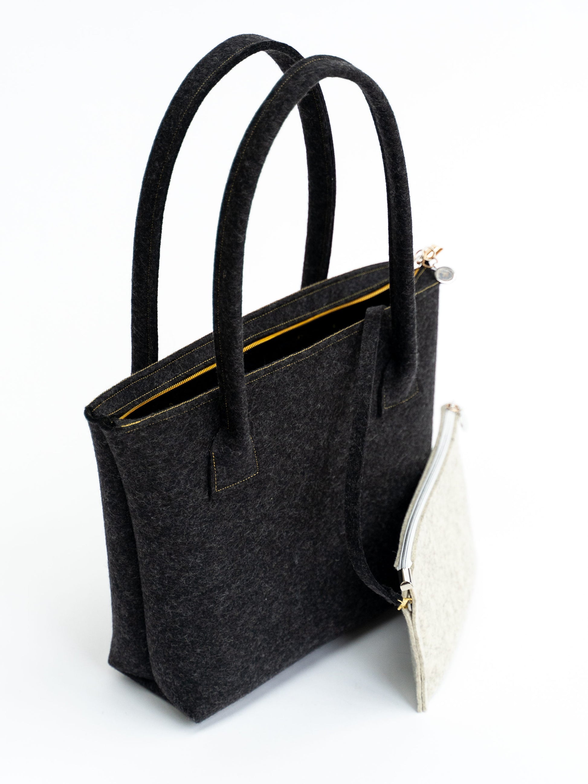 Unsere FINE FELT *G* Shoulder-Bag in Tulpenform, in der immer aktuellen Farbe anthrazit-melange ist eine treue und trendige Begleiterin.